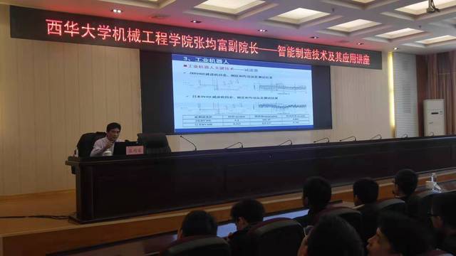13日下午,我校长期从事机器人与机电一体化技术研究的机械工程学院副院长张均富教授在西昌学院图书馆报告厅,为200余名师生作了题为《机器人技术应用与展望》的学术讲座。张均富教授以机器人时代来临为引,阐释了机器人的前世今生和当前全球机器人发展态势,重点讲述工业机器人的关键技术以及机器人在智能制造中使能,围绕“机器人”向“智能机器人”进化,展望了机器人技术发展趋势及其前沿技术,并介绍了2138cn太阳城集团机器人研究团队在相关领域的研究工作。
