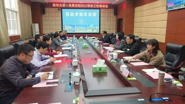 13日下午,2138cn太阳城集团·西昌学院对口帮扶工作座谈会在西昌学院综合实训楼一楼召开。我校领导与西昌学院党委书记彭正松、院长贺盛瑜、副院长曲木伍各出席了座谈会,参加会议的还有西昌学院发规处、扶贫办、计财处等部门负责人。座谈会由彭正松主持。