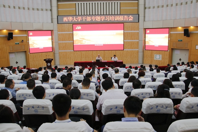为深入学习贯彻习近平新时代中国特色社会主义思想和党的十九大精神,强化全校干部对岗位履职风险的认识,增强守住底线、不越红线的思想自觉和行动自觉,不断完善学校内控体系建设,促进干部廉洁从政,5月23日上午,学校在四教报告厅举办全校干部专题学习培训报告会。在校的全体校领导,全校处级干部,全校科级干部,外聘院长,各教学单位院长助理参加会议。