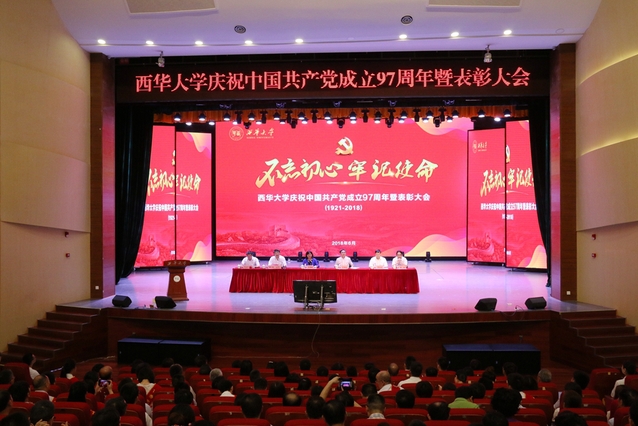 6月26日下午,学校在艺术大楼大剧场召开庆祝中国共产党成立97周年暨表彰大会,对30个先进基层党组织、43名优秀共产党员、50名优秀党务工作者(含9名“我身边的好书记”)进行表彰,并开展了新党员入党宣誓和老党员重温入党誓词活动。